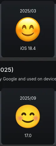 Why are iOS emoji so ugly? They haven’t been updated since they were first introduced in iOS 2.2! The gradient and outline look very dated, compared to Noto Color Emoji.